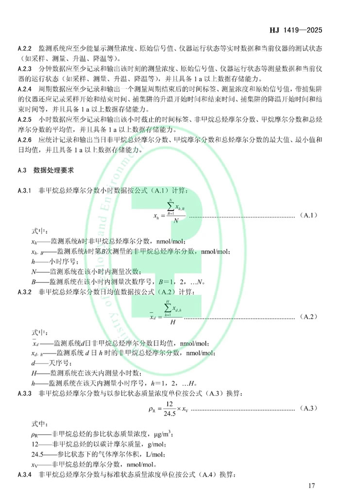 為貫徹《中華人民共和國環境保護法》《中華人民共和國大氣污染防治法》,防治生態環境污染,改善生態環境質量,規范環境空氣非甲烷總烴自動監測系統的技術性能,生態環境部制定國家生態環境標準《環境空氣非甲烷總烴自動監測系統技術要求及檢測方法(HJ 1419—2025)》。本標準為首次發布,自2026年4月1日起實施。