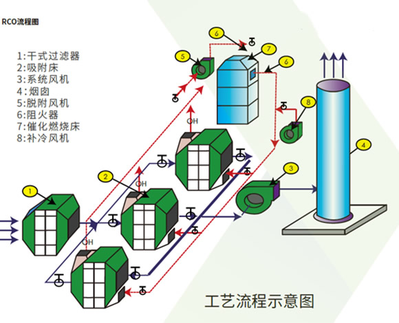 RCO催化燃燒設備是采用低溫氧化技術,即在貴金屬催化劑作用下,將有機氣體加熱到分解溫度使氣體凈化。在高濃度低風量廢氣環境下使用效果好。